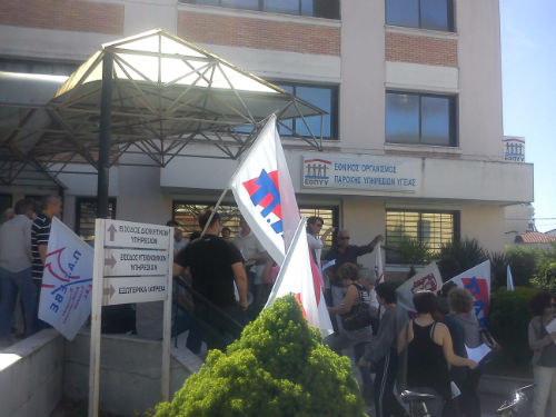 Την Δευτέρα 30 Ιούνη και ώρα 9.30π.μ. παράσταση διαμαρτυρίας έξω από το ΠΕΔΥ ( ΕΟΠΠΥ) μαζί με τα ταξικά εργατικά σωματεία, τα σωματεία των αυτοαπασχολούμενων, της ΠΑΣΕΒΕ, το σωματείο των Συνταξιούχων, το σύλλογο Γυναικών μέλος της ΟΓΕ, και αγροτικούς συλλόγους που ανήκουν στην ΠΑΣΥ.