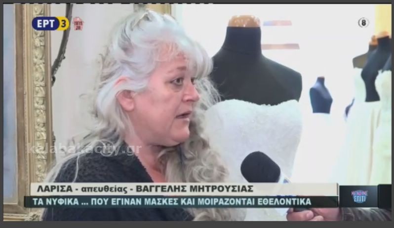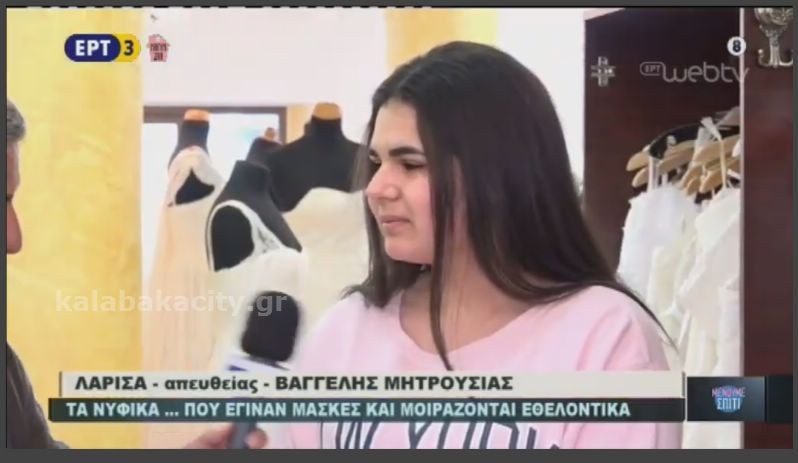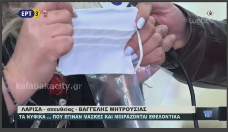 Πανελλήνιας εμβέλειας έτυχε η προσφορά της Καλαμπακιώτισσας Σοφίας Μαύρου – Τζιουβάρα η οποία δημιουργεί με την οικογένεια της προστατευτικές μάσκες στον Οίκο Νυφικών – Βαπτιστικών ΣΟΦΗ που διατηρεί στην Καλαμπάκα.