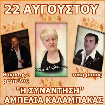 Στο κλαρίνο θα είναι ο Τάκης Μπάος και στο τραγούδι ο Θανάσης Ρέμπελος και η Ντίνα Αλεξοπούλου.