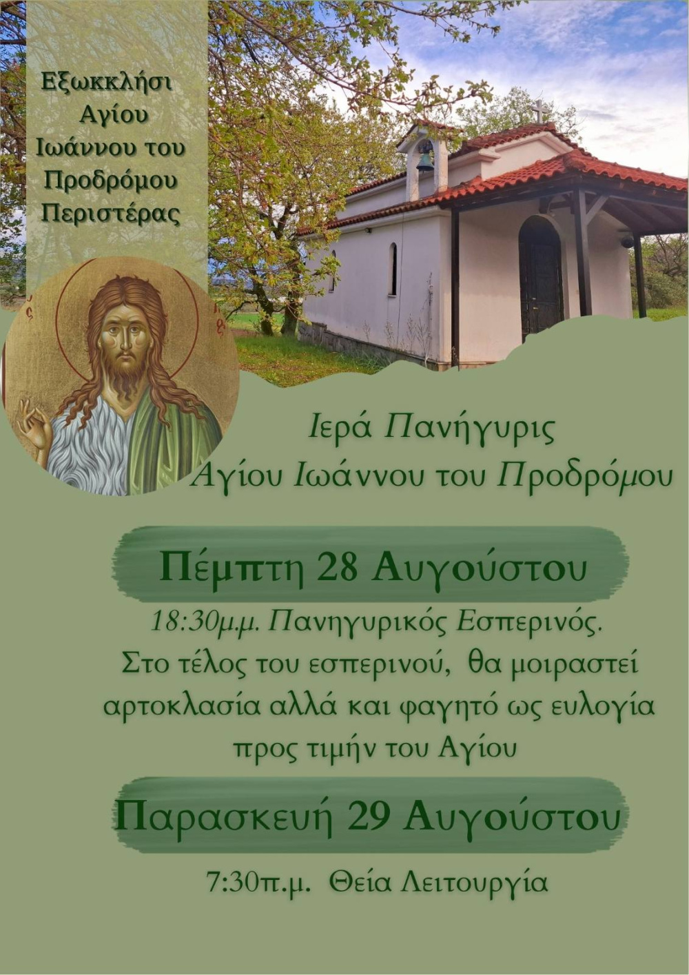 Εξωκλήσι Αγίου Ιωάννου του Προδρόμου Περιστέρας – Ιερά Πανήγυρις Αγίου Ιωάννου του Προδρόμου
