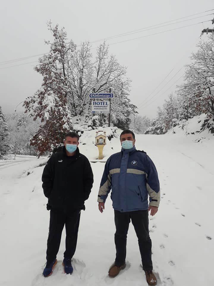 Οι κ.κ Γιώργος Παπανικολάου και Γιώργος Τσικέλης, αντιδήμαρχος Δ. Μετεώρων και Πρόεδρος Κακοπλευρίου αντίστοιχα, βρέθηκαν στο χιονισμένο Κακοπλεύρι για να πράξουν ανάλογα για την ασφαλή μετακίνηση των κατοίκων στην περιοχή.