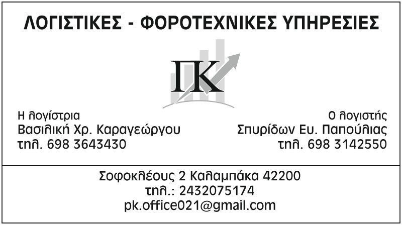 «Παπούλιας – Καραγεώργου» Λογιστικό Φοροτεχνικό Γραφείο στην Καλαμπάκα