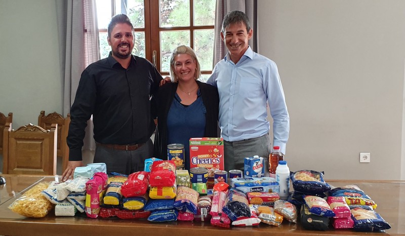Τα τρόφιμα παραδόθηκαν στον Αντιδήμαρχο Αθλητισμού – Πολιτισμού Γεώργιο Θώμο.