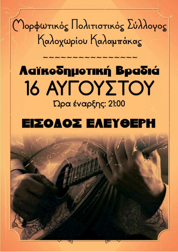 Ο Μορφωτικός Πολιτιστικός Σύλλογος Καλοχωρίου διοργανώνει την Τετάρτη 16 Αυγούστου 2017