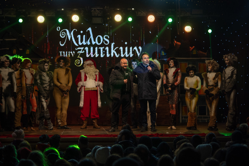 Ο Υπουργός Ψηφιακής Διακυβέρνησης Δημήτρης Παπαστεργίου και ο Δήμαρχος Τρικκαίων Νίκος Σακκάς χαιρέτισαν το πολυπληθές κοινό, αναφέρθηκαν στις όμορφες στιγμές και στις δεκάδες συγκινήσεις που κρύβει φέτος ο Μύλος των Ξωτικών.