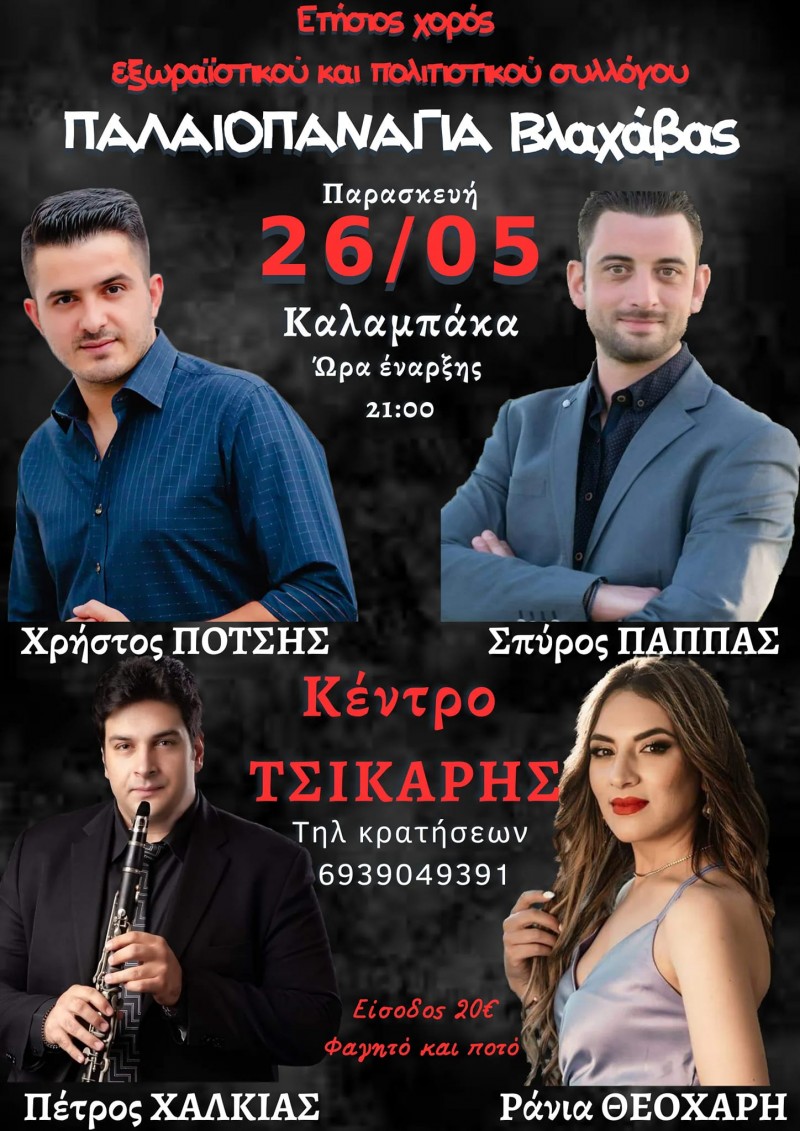 Παρασκευή 26/5 ο ετήσιος χορός του Συλλόγου Βλαχάβας “ΠΑΛΑΙΟΠΑΝΑΓΙΑ” Ανακοινώσεις Από admin Δημοσίευση Μάι 25, 2023 -9:15 0 802 Κοινοποίηση FacebookTwitterΗλεκτρονικό ΤαχυδρομείοViber Το Σάββατο 26 Μαΐου θα πραγματοποιηθεί ο ετήσιος χορός του Εξωραϊστικού και Πολιτιστικού Συλλόγου Βλαχάβας “Παλαιοπαναγιά” στο κέντρο Τσίκαρης στην Καλαμπάκα. Ώρα έναρξης 21:00 0 802 Κοινοποίηση