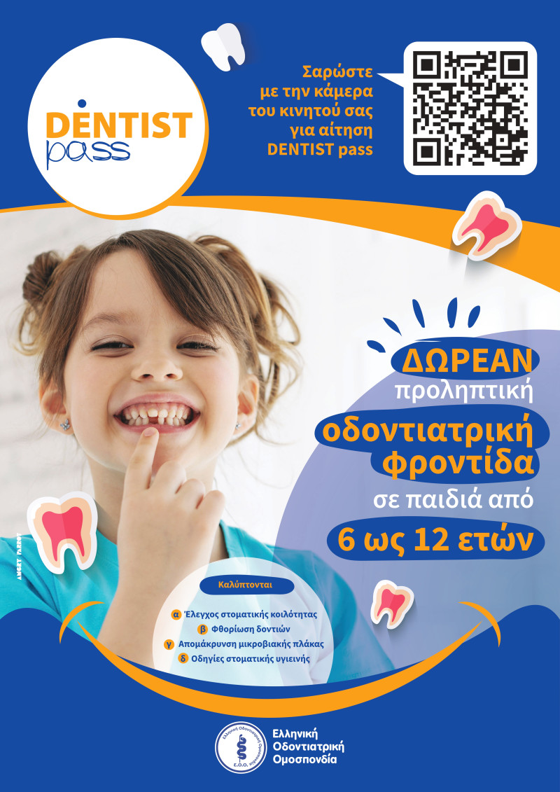 Από την αρχή του καλοκαιριού έχει ξεκινήσει και βρίσκεται σε εξέλιξη η διαδικασία των αιτήσεων για το πρόγραμμα προληπτικής οδοντιατρικής φροντίδας παιδιών ηλικίας 6-12 ετών-αφορά για φέτος παιδιά γεννημένα από το 2011 έως και το 2017- γνωστό με την επωνυμία «dentist pass».