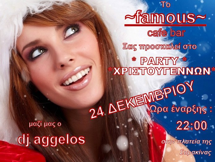 Party Χριστουγέννων στο cafe – bar Famous στη Σαρακίνα με τον Dj Aggelo