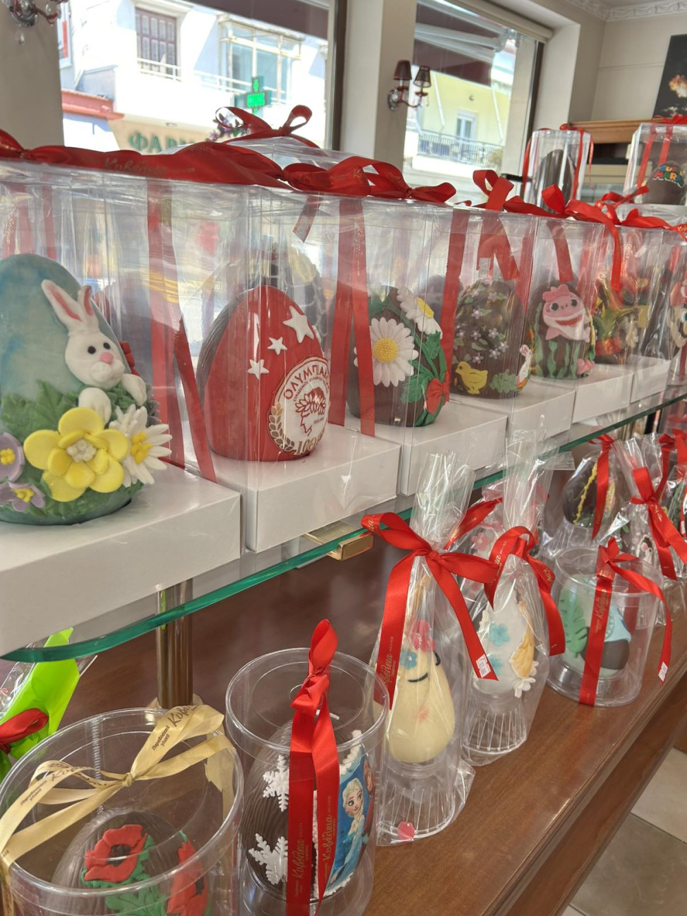 Για το Πάσχα μπορείτε να επιλέξετε για δώρα, Πασχαλινά σοκολατένια αυγά, Πασχαλινά καλάθια για τον νονό και την νονά, σοκολατάκια, νοστιμότατα τσουρέκια και το μοναδικό Τσουρέκι DUBAI που δημιούργησε το Ζαχαροπλαστείο ΠΑΜΠΙΡΗΣ το οποίο επιβάλλεται να το απολαύσετε!!!
