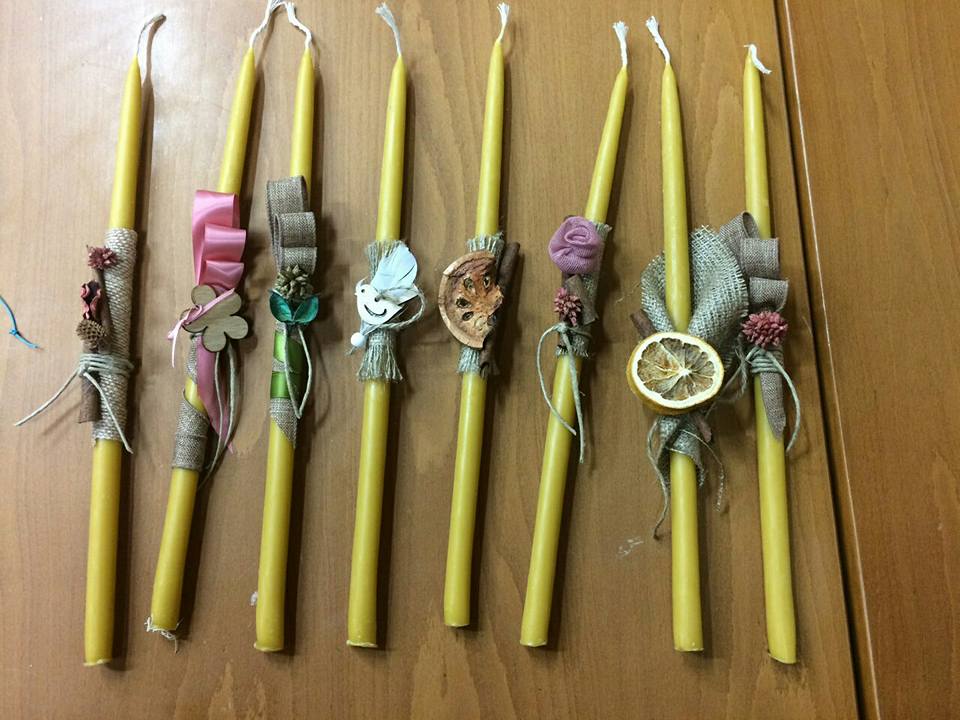Στην αίθουσα του συλλόγου θα βρούνε Χειροποίητες λαμπάδες που έφτιαξαν οι εθελοντές με αγάπη και μεράκι.
