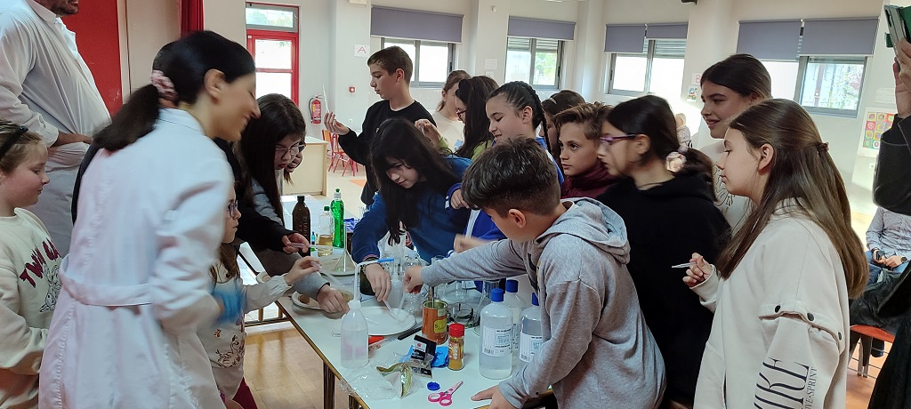 Με πρωτοβουλία του Συλλόγου γονέων και Κηδεμόνων του σχολείου μας οι χημικοί Ελένη Καρανίκα και Κοσμάς Καψάλης έκαναν παρουσίαση πειραμάτων. Στη συνέχεια με την καθοδήγηση των χημικών οι μαθητές έκαναν τα πειράματα και οι ίδιοι.