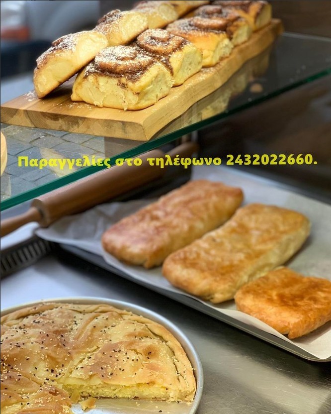 Καθημερινά σας περιμένουν παραδοσιακές πίτες με έξτρα παρθένο ελαιόλαδο, με χειροποίητο φύλλο και αγνά υλικά οι οποίες φτάνουν και στον χώρο σας – DELIVERY – καλώντας στο τηλ.: 24320 22660 από τις 08:00 το πρωί εως τις 14:00 το μεσημέρι .