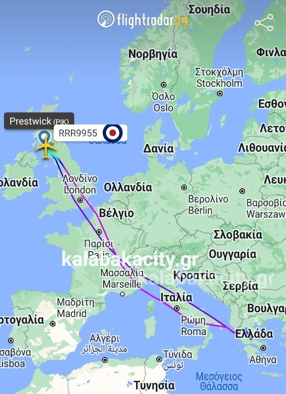 Μια περίεργη διαδρομή πάνω από τη Θεσσαλία έκανε την Πέμπτη αεροσκάφος τύπου Airbus της πολεμικής αεροπορίας του Ηνωμένου Βασιλείου.