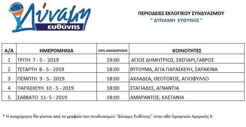 Περιοδείες Εκλογικού Συνδυασμού « Δύναμη Ευθύνης »