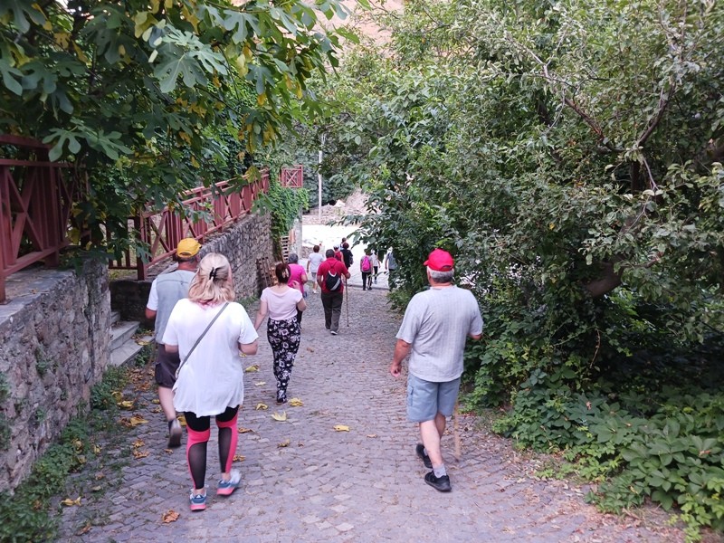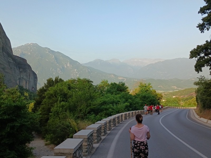Μετά από λίγο φτάσαμε στην Ιερά Μονή Βαρλαάμ. Από εκεί δεκαέξι τολμηροί πεζοπόροι, καθότι ο καιρός υπήρχε ιδιαίτερα θερμός, με οδηγό τον οδηγό βουνού αρχίσαμε να κατεβαίνουμε το μονοπάτι. Είναι αδύνατο να χωρέσουν σε λέξεις οι ομορφιές της φύσης των Μετεώρων και η επιβλητική μορφή των Ιερών Μονών μας. Σημείο αέναης πνευματικής αναφοράς. Ο ήλιος, το χώμα, τα δέντρα, τα φύλλα των δέντρων, τα μονοπάτια, ο αέρας, η μυρωδιά της φύσης, όλα μαζί συνέθεταν ένα μυσταγωγικό πρωινό σκηνικό.