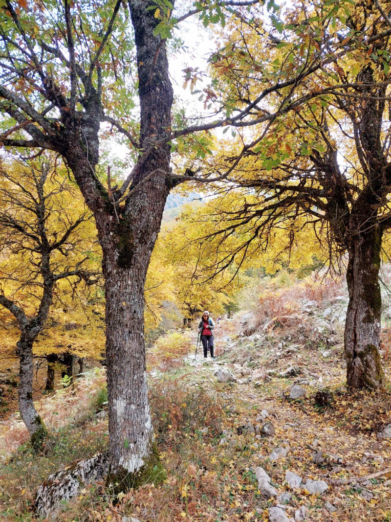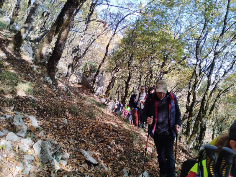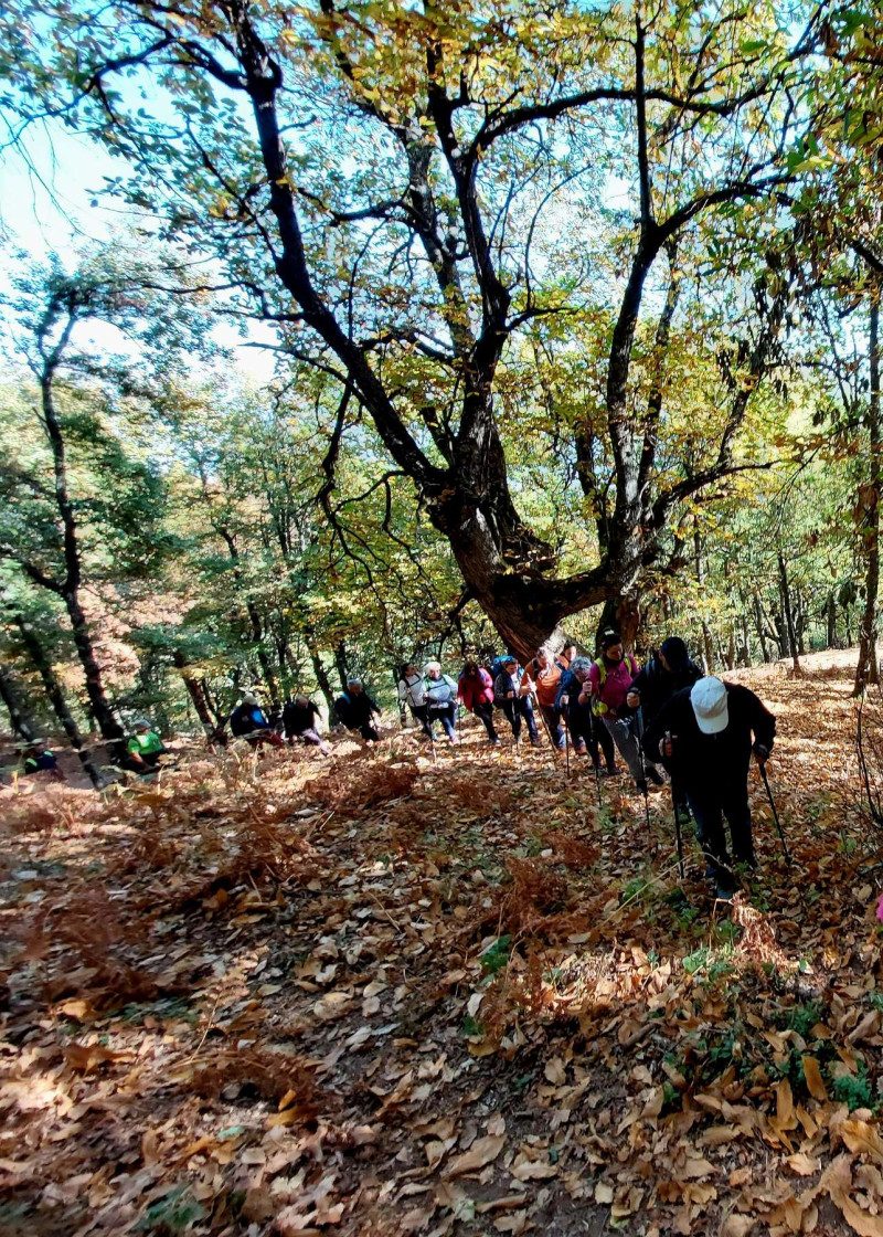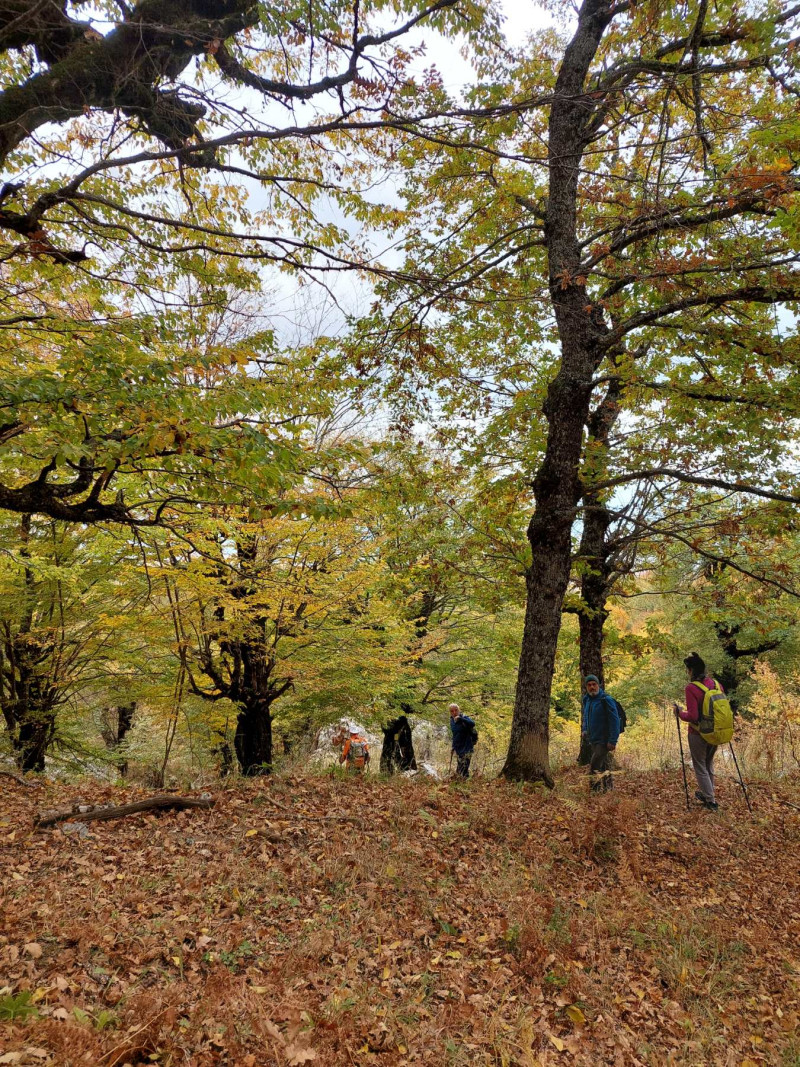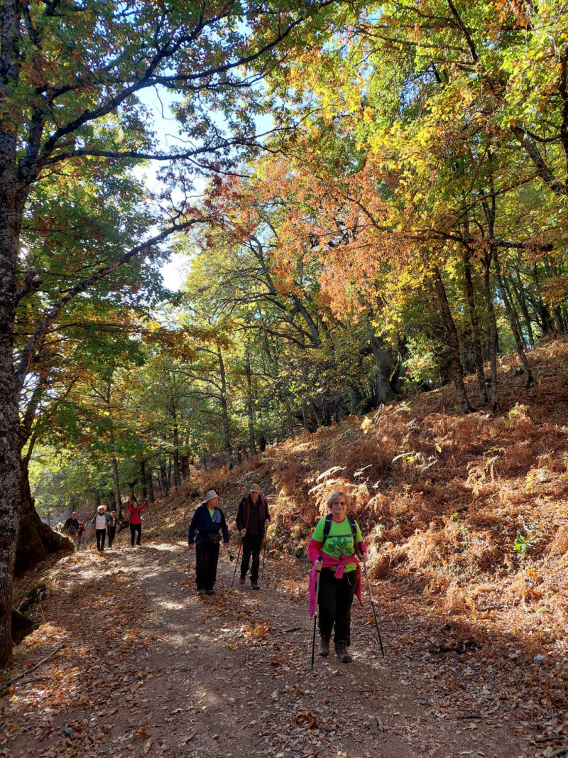 Πεζοπορήσαμε μέσα σε καστανιές, βελανιδιές και οξιές. Το τοπίο πανέμορφο με τα φύλλα να έχουν πάρει τα χρώματα του φθινοπώρου. Στην πορεία συμμετείχαν και μικρά παιδιά!!