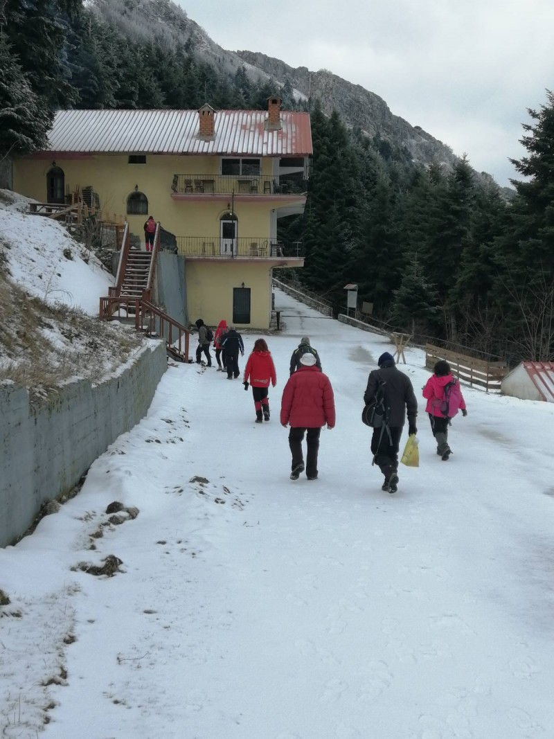 Κατεβαίνοντας από την κορυφή ακολουθήσαμε ανατολική πορεία, για να εξερευνήσουμε και εκείνη την περιοχή, μιας και δυτικά είχαμε ξαναπάει. Αργότερα ζεσταθήκαμε στο αναμμένο τζάκι στο καταφύγιο του Φ. Ο. Χ. Σ. Α απολαμβάνοντας καυτό τσάι , καφέ, τσίπουρο συζητώντας για τις επόμενες διαδρομές.