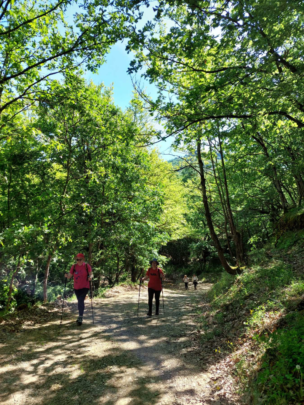 Τα δέντρα είχαν φορέσει το πυκνό, καταπράσινο φύλλωμά τους, δημιουργώντας μια μαγευτική σκιά σε όλη τη διαδρομή. Μέσα από αυτά τα όμορφα τοπία φτάσαμε στην Αγία Παρασκευή, όπου ανάψαμε ένα κεράκι.
