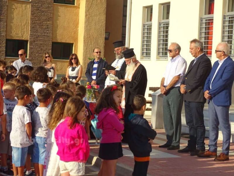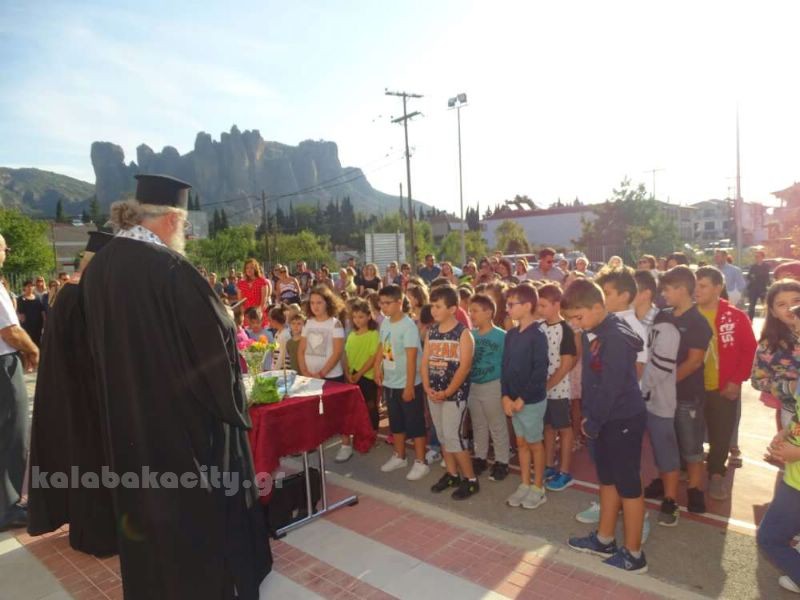 Οι μαθητές όλων των σχολείων παρουσία των νηπιαγωγών, δασκάλων και καθηγητών, δέχθηκαν τις ευχές των ιερέων της Ιεράς Μητρόπολης Καλαμπάκας που τέλεσαν τον αγιασμό, για καλή σχολική χρονιά και χωρίς προβλήματα.