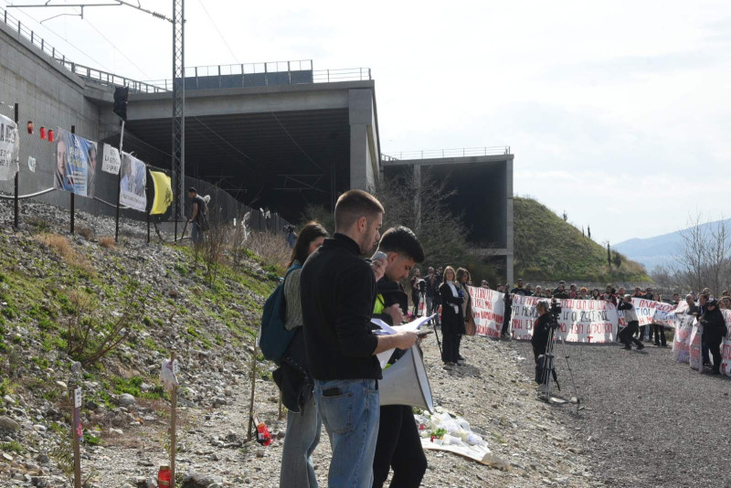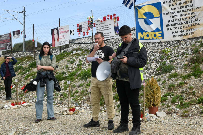 “Είμαστε εδώ ένα χρόνο μετά για να στείλουμε ένα μήνυμα ότι το έγκλημα αυτό όχι μόνο θα ξεχαστεί, αλλά θα συνεχίσει να είναι νωπό μέσα στα μυαλά. Μέσα σε αυτό το τρένο είχαμε συναδέλφους μας που χάθηκαν, 13 από το ΑΠΘ…” δήλωσε μέλος του φοιτητικού συλλόγου του Τμήματος Ψυχολογίας του Αριστοτέλειου Πανεπιστημίου Θεσσαλονίκης.