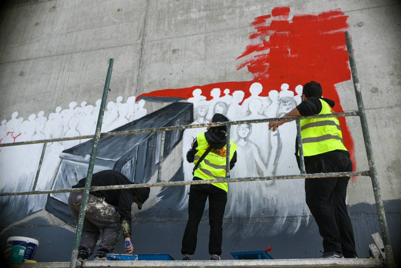 Μαζί τους και συγγενείς θυμάτων. Οι παρευρισκόμενοι άφησαν λουλούδια, φύτεψαν ελιές, ενώ παρακείμενα δημιουργήθηκε και τοιχογραφία στη μνήμη των 57 αδικοχαμένων ψυχών.