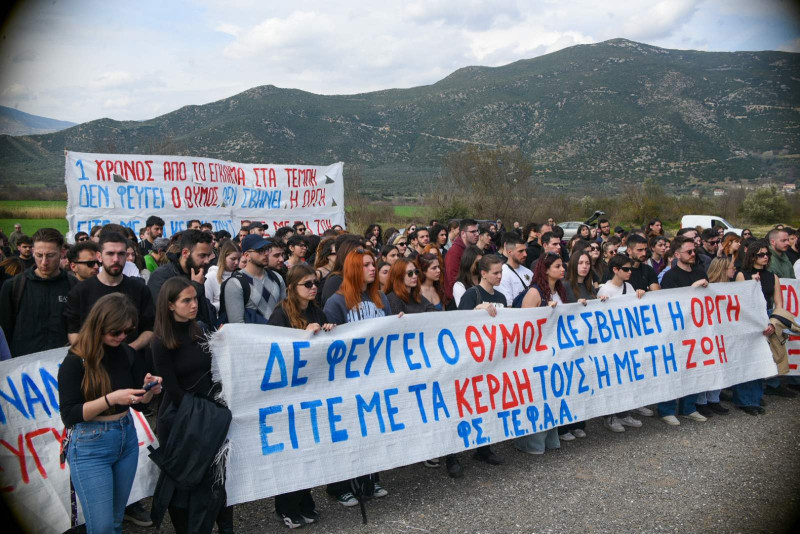 Πλήθος φοιτητών από διάφορα σημεία της χώρας κατέφθασαν στον τόπο του ανείπωτου πολύνεκρου σιδηροδρομικού δυστυχήματος των Τεμπών που στέρησε τη ζωή σε 57 ανθρώπους, στην πλειοψηφία τους νέους και φοιτητές.