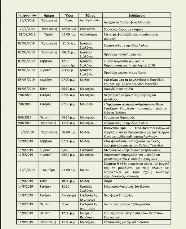 Πλούσιο πρόγραμμα εκδηλώσεων από τον Πολιτιστικό Σύλλογο Κρανιάς για τον Αύγουστο