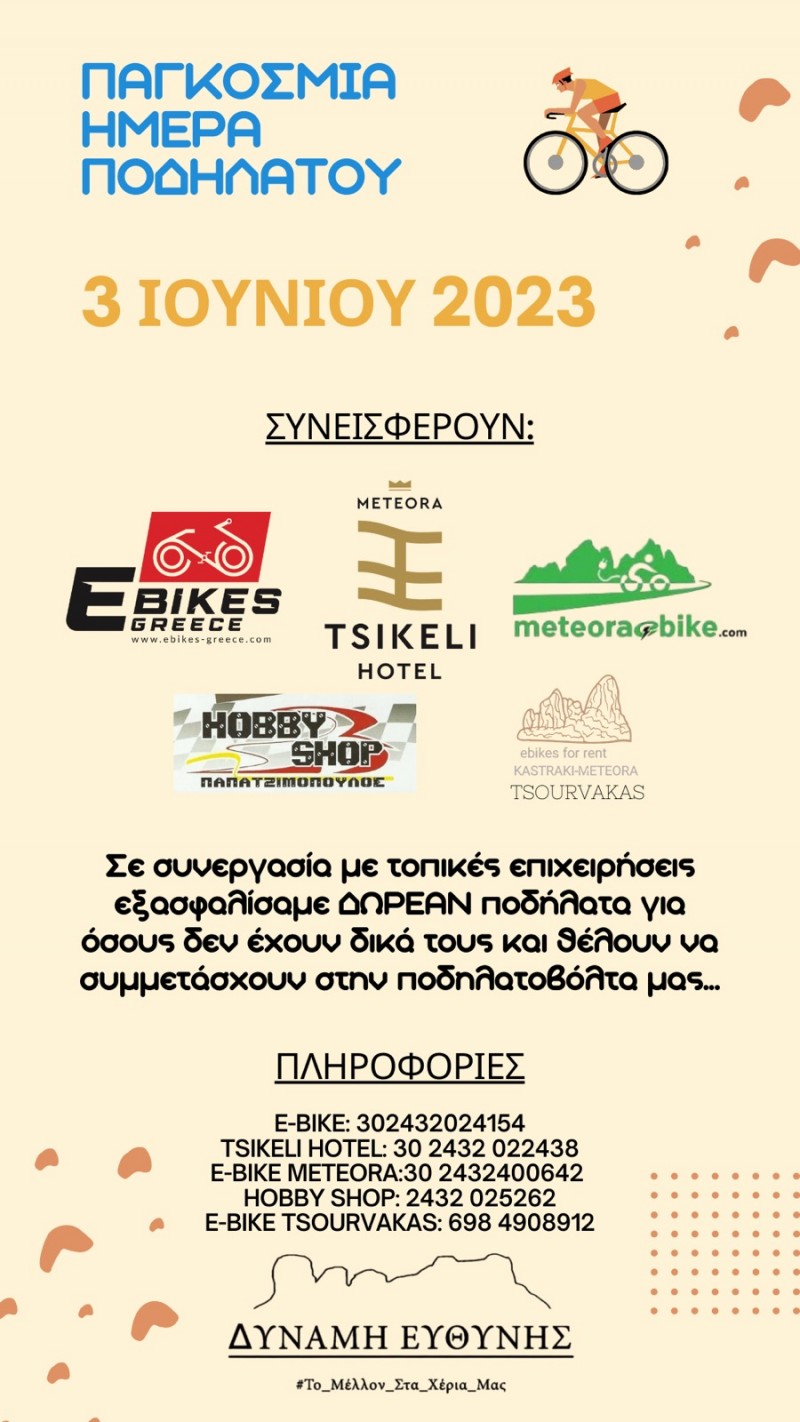Ποδήλατα για την ποδηλατάδα της “Δύναμη Ευθύνης” από επαγγελματίες της Καλαμπάκας Ανακοινώσεις Από admin Δημοσίευση Ιούν 1, 2023 -15:48 0 806 Κοινοποίηση FacebookTwitterΗλεκτρονικό ΤαχυδρομείοViber Θα θέλαμε να σας ενημερώσουμε ότι κατόπιν της ευγενικής χορηγίας επαγγελματιών της περιοχής μας, θα διατεθεί ένας αριθμός ποδηλάτων για όποιον/ α επιθυμεί να πάρει μέρος στην ποδηλατάδα και δεν διαθέτει ποδήλατο. Η ομάδα της ”Δύναμης Ευθύνης” 0 806 Κοινοποίηση