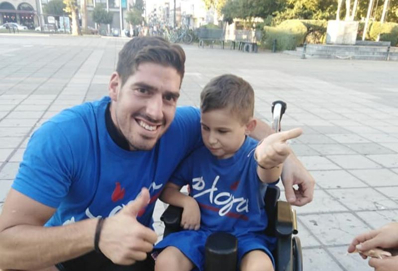 Ο Γιώργακης Μάνης με το ειδικό προσαρμοσμένο αμαξίδιο και τον ποδηλάτη της ΝΙΚΗΣ ΒΟΛΟΥ Άγγελο Κριτσιώτη, θα δώσουν τον δικό τους αγώνα…