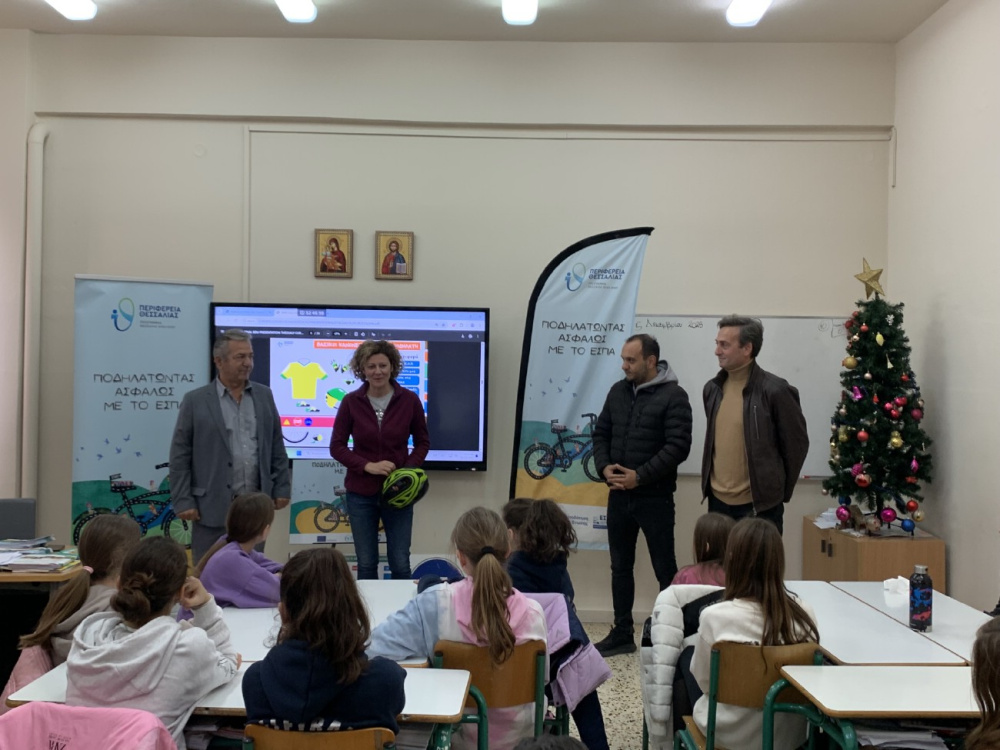 Ο αντιπεριφερειάρχης ήρθε από τον Βόλο στην Καλαμπάκα για να παρακολουθήσει την υλοποίηση του Εκπαιδευτικού Προγράμματος «Ποδηλατώντας ασφαλώς με το ΕΣΠΑ», ένα πρόγραμμα που υλοποιείται σε σχολεία, από την Περιφέρεια Θεσσαλίας σε συνεργασία και με την