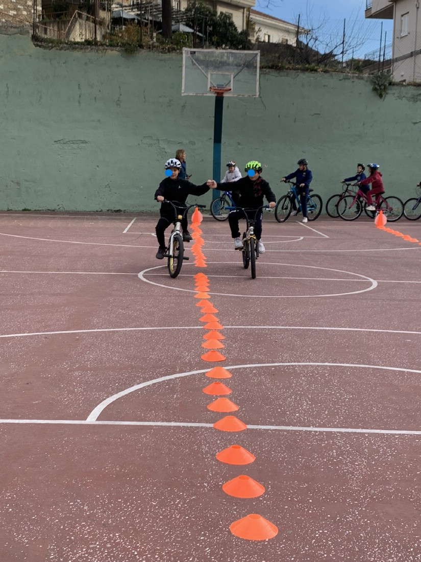 χρήσιμες συμβουλές και κανόνες για σωστή και ασφαλή χρήση του ποδηλάτου ενώ η 2η και τελευταία ώρα περιλάμβανε το πρακτικό μέρος στην αυλή του σχολείου.