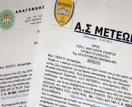 Για του λόγου το αληθές, Ο «Α .Σ ΜΕΤΕΩΡΑ» παραθέτει τις επιστολές που αντήλλαξαν στις τελευταίες μέρες οι δύο σύλλογοι, όπως τις δημοσιεύει το Corfu Corner.gr