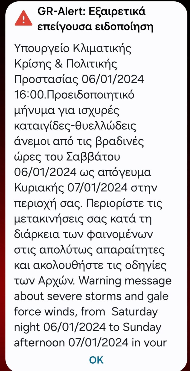 GR-Alert Εξαιρετικά επείγουσα ειδοποίηση