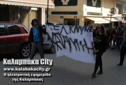 Πορεία στο κέντρο της Καλαμπάκας και συγκεκριμένα στην οδό Τρικάλων πραγματοποίησαν σήμερα το πρωί οι μαθητές του Γενικού Καλαμπάκας