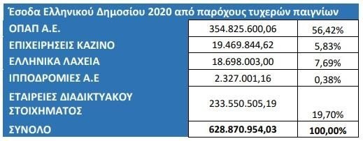 Αναλυτικά τα Έσοδα του Ελληνικού Δημοσίου από παρόχους τυχερών παιγνίων το 2020: