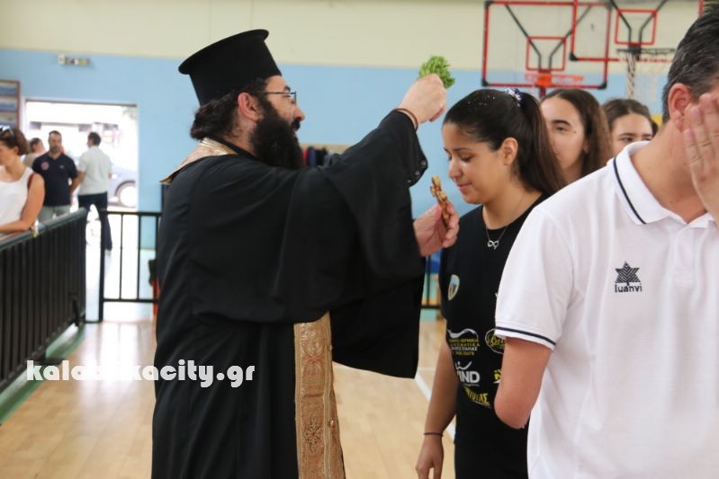 Ο αγιασμός τελέστηκε από τον π. Χαράλαμπο Καπλανίδη παρουσία του προέδρου κ. Αντώνη Ζάρα, του προπονητή κ. Γιωργου Τσικέλη και γονέων των αθλητριών.