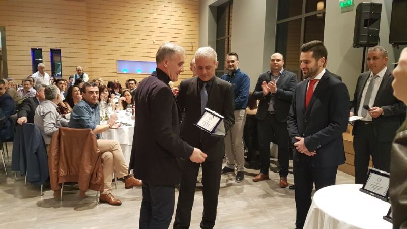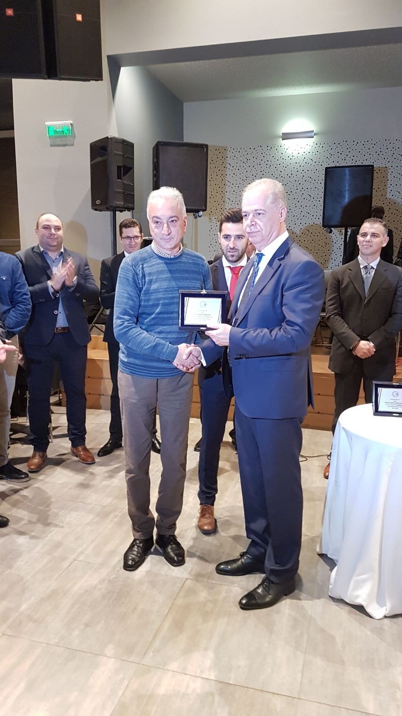 Επίσης με απόφαση των ενώσεων μας βραβεύσαμε τον συνάδελφο κ. ΚΑΡΑΜΑΝΟ Αθανάσιο για τις αθλητικές διακρίσεις του και την βράβευση έκαναν οι δυο πρόεδροι κ. ΑΝΑΓΝΩΣΤΟΥ Ιωάννης και κ. ΜΠΕΓΑΣ Αχιλλέας.