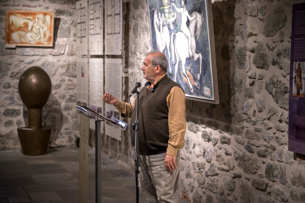 - Η εκδήλωση των εγαινίων έκλεισε με την όμορφη, παραστατική και βιωματική, ξ ε ν ά γ η σ η του κοινού στα έργα του Σταύρου από τον συμπολίτη μας ζωγράφο – χαράκτη και καταξιωμένο δάσκαλο της τέχνης Η λ ί α Κ ο τ σ ί ρ α.