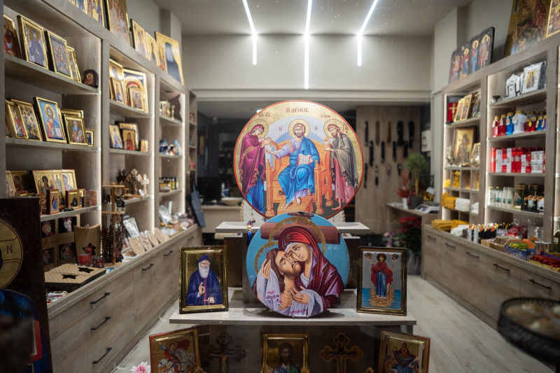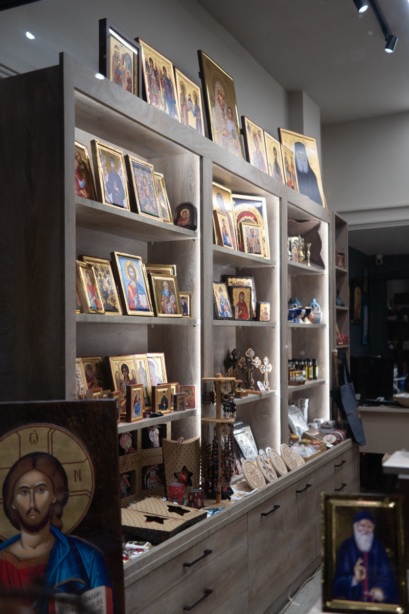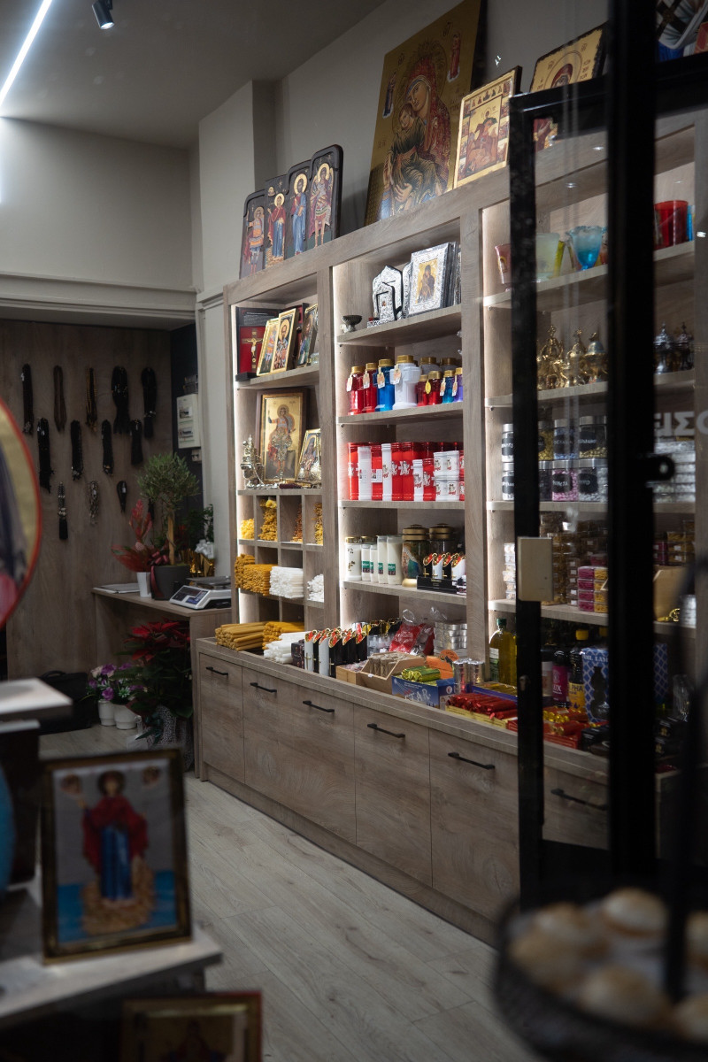 Το κατάστημα προσφέρει χειροποίητα εκκλησιαστικά είδη υψηλής ποιότητας, όπως εικόνες, σταυρούς, αναλώσιμα και πολλά άλλα, εμπνευσμένα από τη βυζαντινή τέχνη.