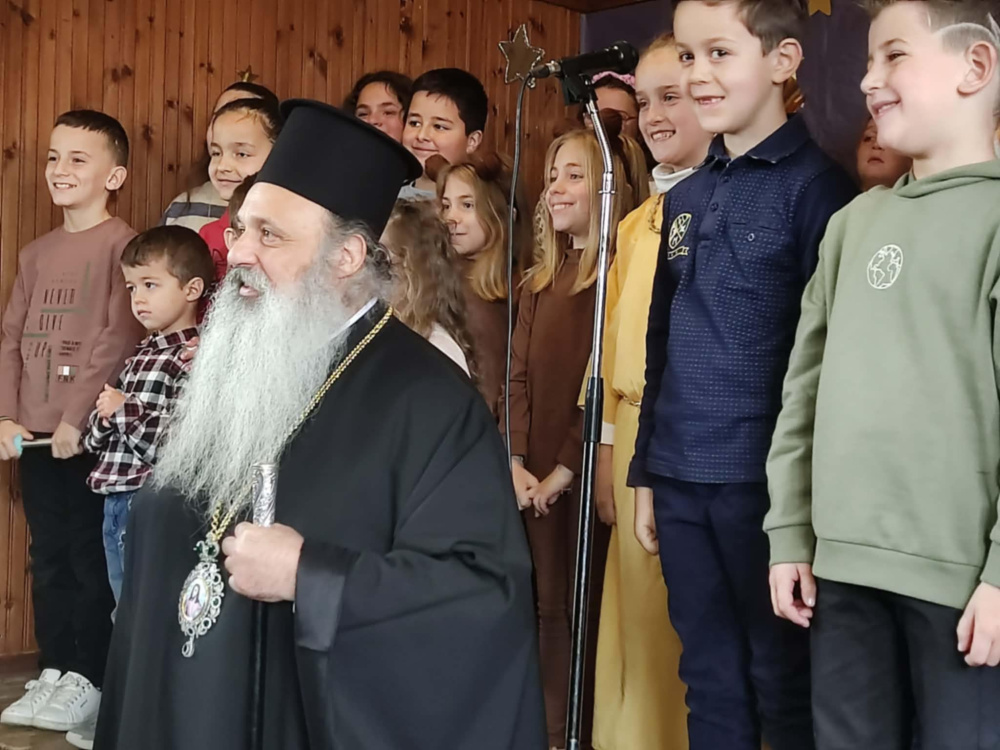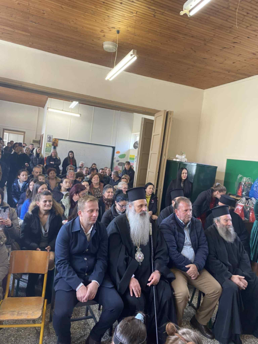 Ο Σεβασμιότατος ευλόγησε τους παρευρισκόμενους και μοίρασε δώρα σε μαθητές και εκπαιδευτικούς χαρίζοντας τους χαμόγελα και γιορτινή διάθεση.