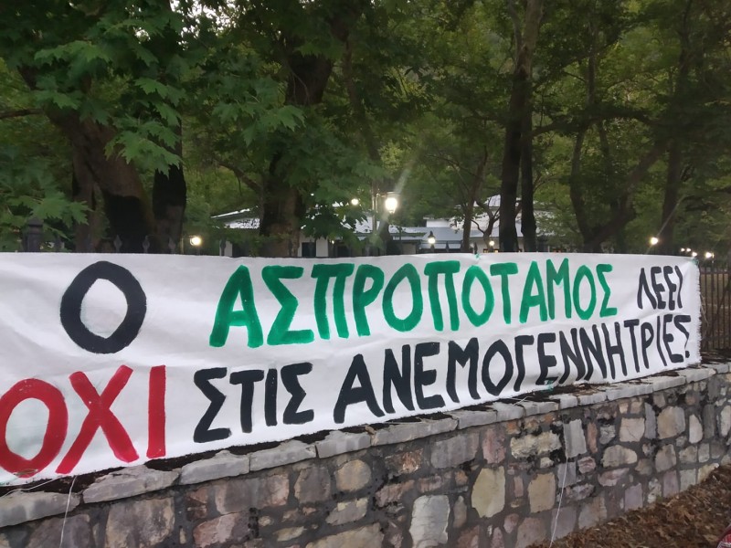 ολέθριες επιπτώσεις της εγκατάστασης βιομηχανικών σταθμών παραγωγής ενέργειας με τη λειτουργία γιγάντιων ανεμογεννητριών στον παρθένο Ασπροπόταμο.