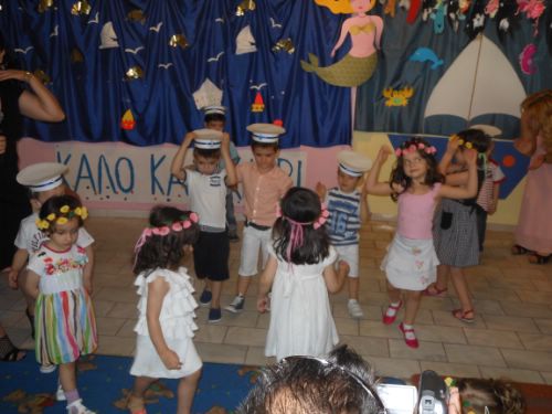 Tα παιδιά μέσα σε ένα όμορφο και ζεστό περιβάλλον παρουσία των γονιών τους απήγγειλαν ποιήματα , τραγούδησαν και χόρεψαν τραγούδια του καλοκαιριού. Τα αγόρια ντυμένα ναύτες και τα κορίτσια γοργόνες μας ταξίδεψαν στον μαγευτικό κόσμο της θάλασσας.