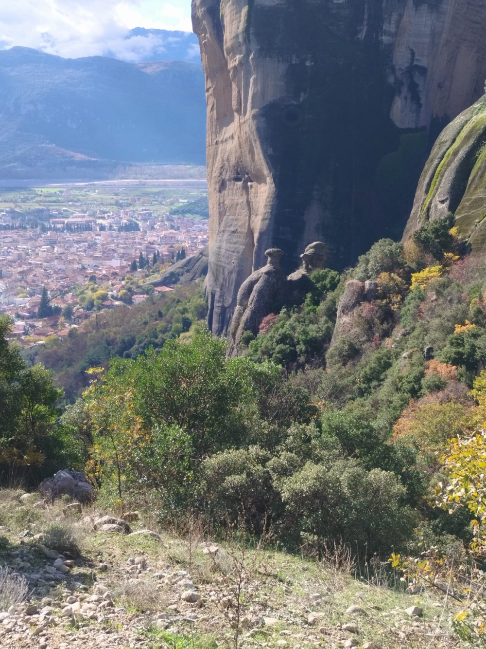 Η κατάβαση οδήγησε στο μονοπάτι που περνά δίπλα από τα Μικρά Τείχη και συναντά το μονοπάτι της Αγίας Τριάδας. Η διαδρομή ολοκληρώθηκε στην παλαιά πόλη της Καλαμπάκας, κλείνοντας ιδανικά μια όμορφη φθινοπωρινή διαδρομή.