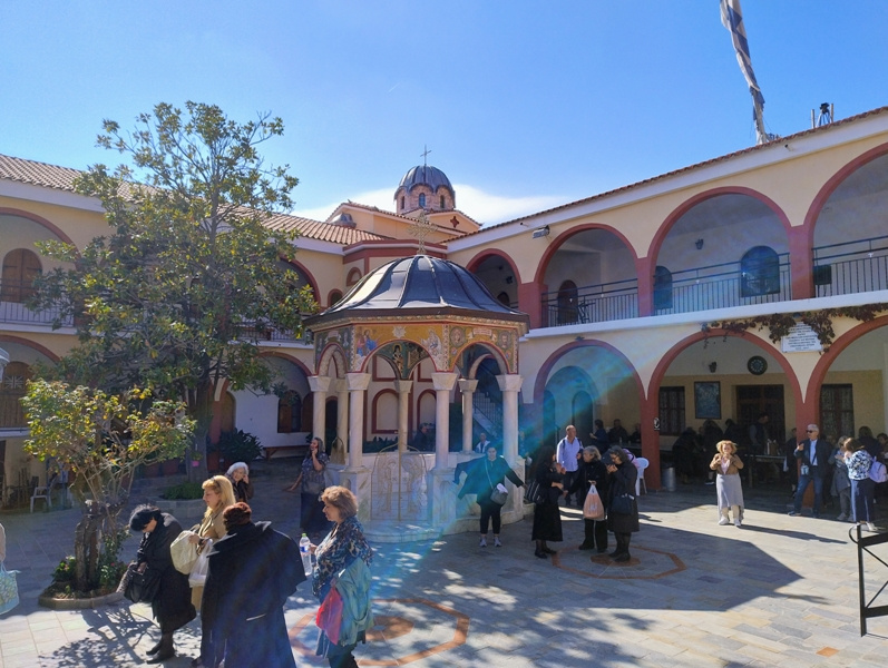 Φτάνοντας το πρωί στη Γλύφα, με το ferry boat περάσαμε απέναντι στον Αγιόκαμπο. Από εκεί κατευθυνθήκαμε στην Ιερά Μονή του Οσίου Δαυίδ, όπου προσκυνήσαμε στον τάφο του αγίου Ιακώβου Τσαλίκη και επισκεφτήκαμε το κελί του αγίου. Μας προσφέρθηκε φιλοξενία από την Ιερά Μονή κατόπιν ευλογίας του Γέροντος π. Γαβριήλ. Στη συνέχεια επισκεφτήκαμε τον Ιερό Ναό του αγίου Ιωάννη του Ρώσου στο Προκόπι. Κι εκεί, μοναδικές πνευματικές στιγμές. Προσκυνητές από κάθε έθνος προσκυνούν τον άγιο Ιωάννη. Ακολούθησε μεσημεριανό στην γύρω περιοχή. Τελευταίος μας σταθμός η πόλη της Χαλκίδας. Πανέμορφη και φιλόξενη. Απολαύσαμε τον καφέ μας στην παραλία χαζεύοντας τη θάλασσα και αναπολώντας.