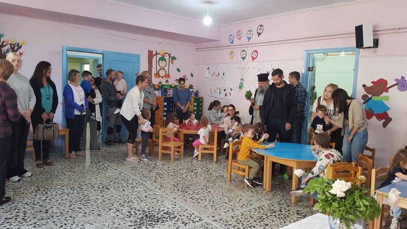 Μέσα σε μια χαρούμενη ατμόσφαιρα γεμάτη από παιδικές φωνές και χαμογέλα, παρουσία της αντιδημάρχου Πολιτισμού και Παιδείας κ. Λίλας Μπαντέκα Νάνη , της προϊσταμένης κ. Μέλλιου Βάιας , του πρόεδρου του συλλόγου δημοτικών υπαλλήλων ν. Τρικάλων Κωστίκα Ευάγγελου, της διευθύντριας του Παιδικού Σταθμού Θεοδώρου Αριστέας , του παιδαγωγικού και βοηθητικού προσωπικού και των γονέων, τελέστηκε ο αγιασμός του 1ου Παιδικού Σταθμού Καλαμπάκας από τον π .Ιωάννη Ζώτο.