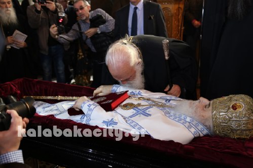 Τον Μητροπολίτη Σεραφείμ αποχαιρέτησε σήμερα το μεσημέρι ο Καλαμπακιώτικος λαός στον Ιερό Μητροπολιτικό Ναό του Αγίου Βησσαρίωνος.