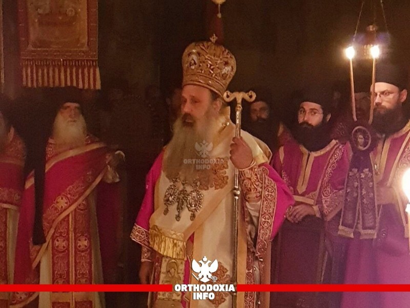 Προεξάρχοντος του μητροπολίτη Σταγών κ. Θεοκλήτου τελέστηκε το βράδυ της Κυριακής ιερά αγρυπνία στον ιερό ναό του πρωτάτου στις Καρυές του αγίου όρους, για τον εορτασμό της ανάμνησης του θαύματος της παράδοσης του αρχαγγελικού ύμνου «Άξιον Εστί» προς την Παναγία.