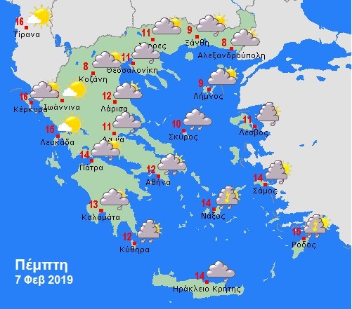 Ο καιρός της Παρασκευής 8 Φεβρουαρίου 2019