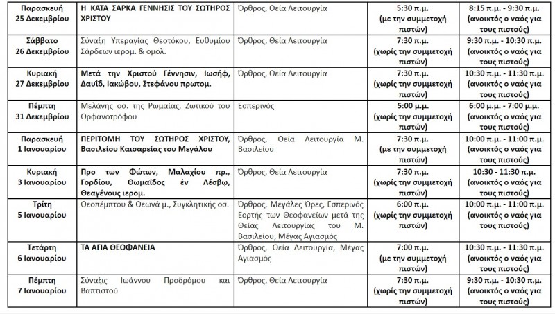 3. Κατ’ εξαίρεση επιτρέπεται η παρουσία των πιστών στις 25 Δεκεμβρίου (εορτή Γεννήσεως Χριστού), 1 Ιανουαρίου (εορτή Μ. Βασιλείου) και 6 Ιανουαρίου (εορτή των Φώτων), τηρουμένων των μέτρων (αριθμός πιστών κ.τ.λ.) που ορίζονται από την Κ.Υ.Α..