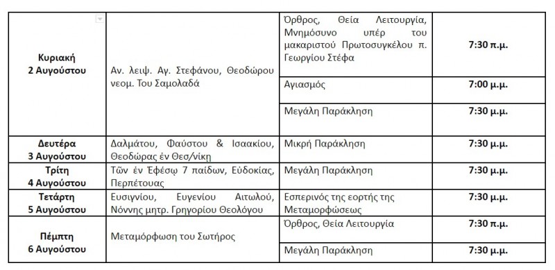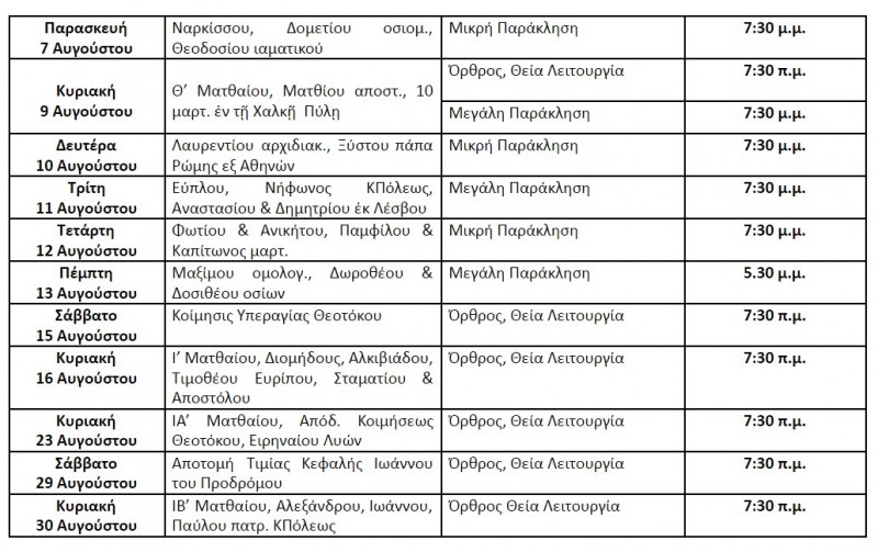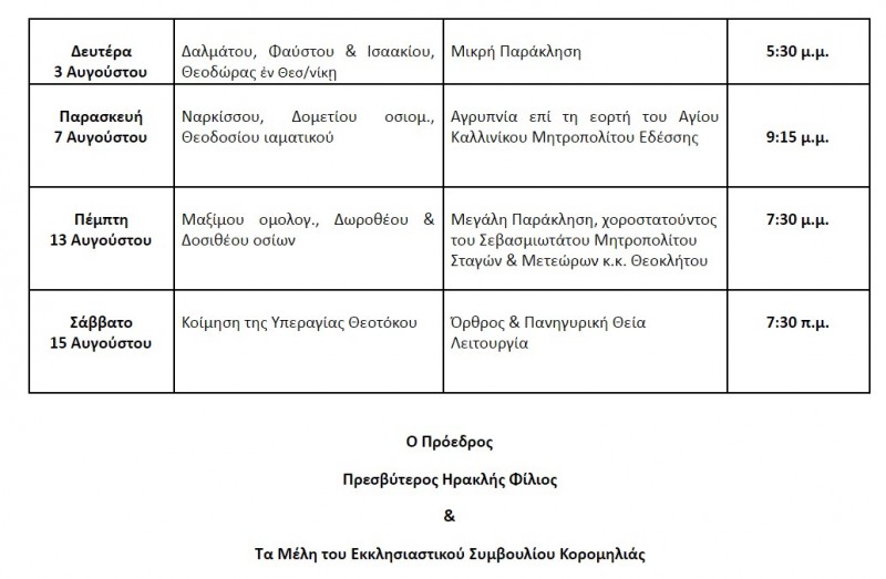Πρόγραμμα Ιερών Ακολουθιών και Μυστηρίων Αυγούστου σε Διάβα και Κορομηλιά Ανακοινώσεις Από admin Δημοσίευση Ιούλ 30, 2020 -18:26 0 576 Κοινοποίηση FacebookTwitterΗλεκτρονικό ΤαχυδρομείοViber Το πρόγραμμα των Ιερών Ακολουθιών στον Ι.Ν Αγίου Δημητρίου Διάβας για τον μήνα Αύγουστο έχει ως εξής: Το πρόγραμμα των Ιερών Ακολουθιών στην Κορομηλιά Καλαμπάκας έχει ως εξής: 0 576 Κοινοποίηση